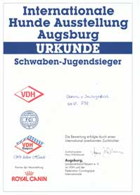 | 22.07.2012 | IHA Augsburg | Jugend | Sehr Gut 1, Schwaben-Jugendsieger, Jug-CAC, Anw. Dt. Jug. CH. VDH | Hr. Güllix |