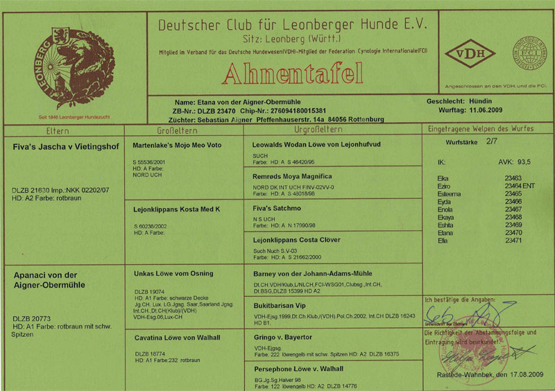 | 27.09.2009 | Clubschau Leonberg | Welpenberatung | Hr. Maier | |